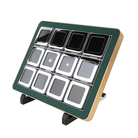 DK21664-12G Deluxe Jewelry Display Tray 12 Stylish Boxes with Gold Frame and Elegant Background Choices